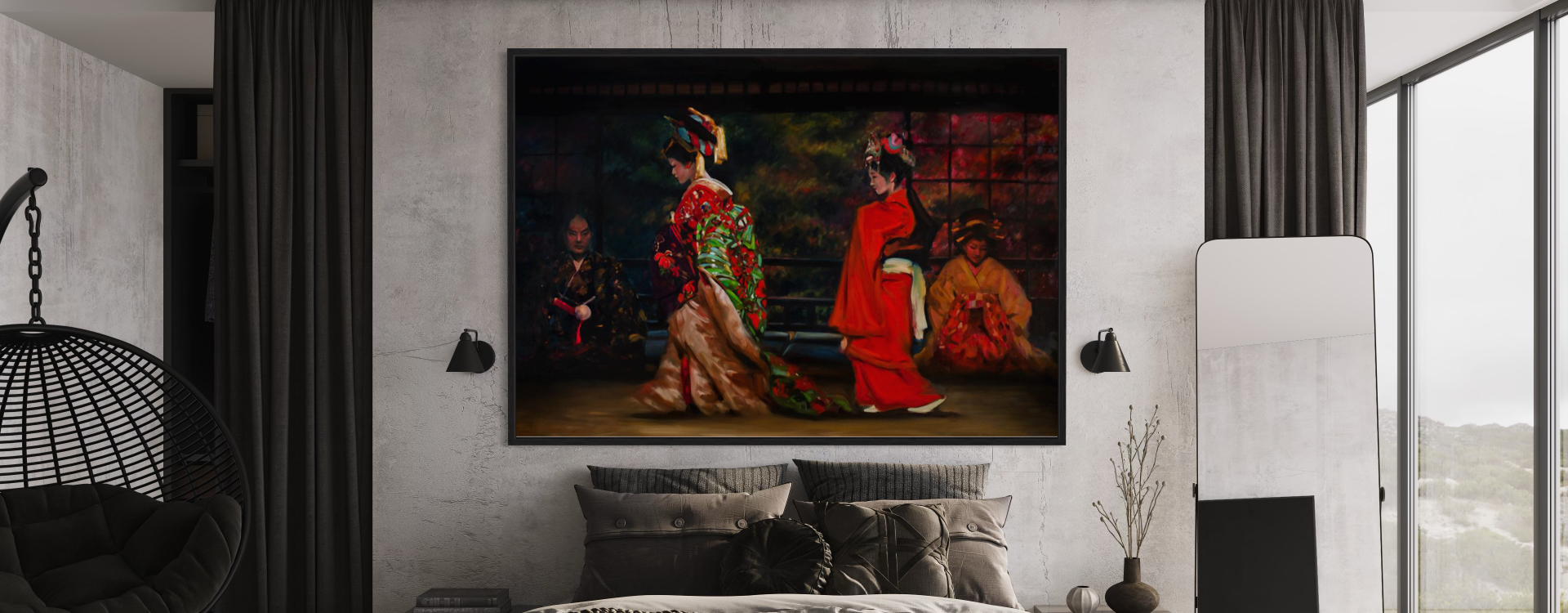 transcends sound. With graceful geishas and intertwining hues, this masterpiece unveils a world of