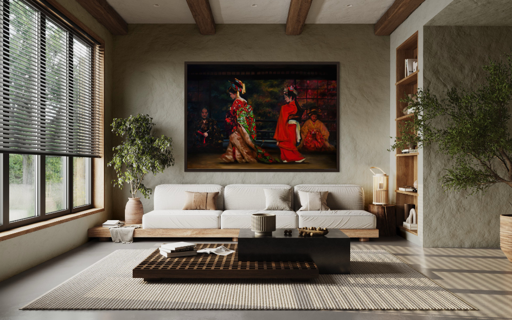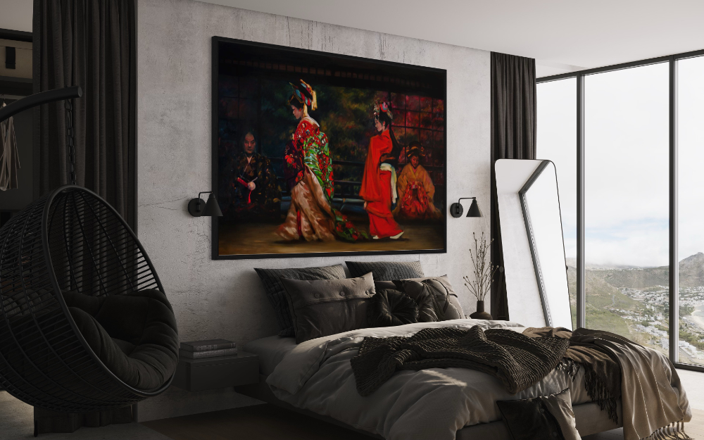 "Silentium" goes beyond being just a painting; it's a portal to the past, an encapsulation of history and culture. The geishas and the samurai are not just figures on a canvas; they are the embodiment of an era—a bridge between times. They beckon us to traverse time and step into their world, to experience the grace and admiration that once thrived in the air they breathed.
